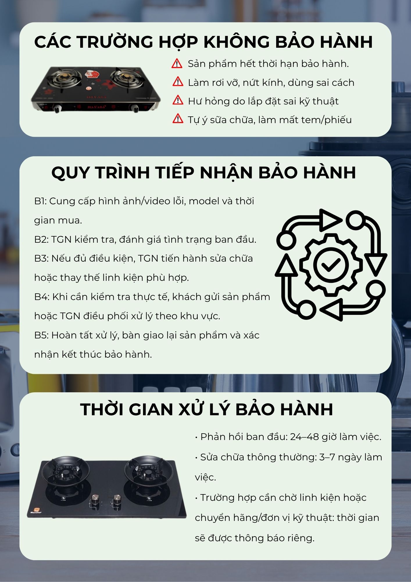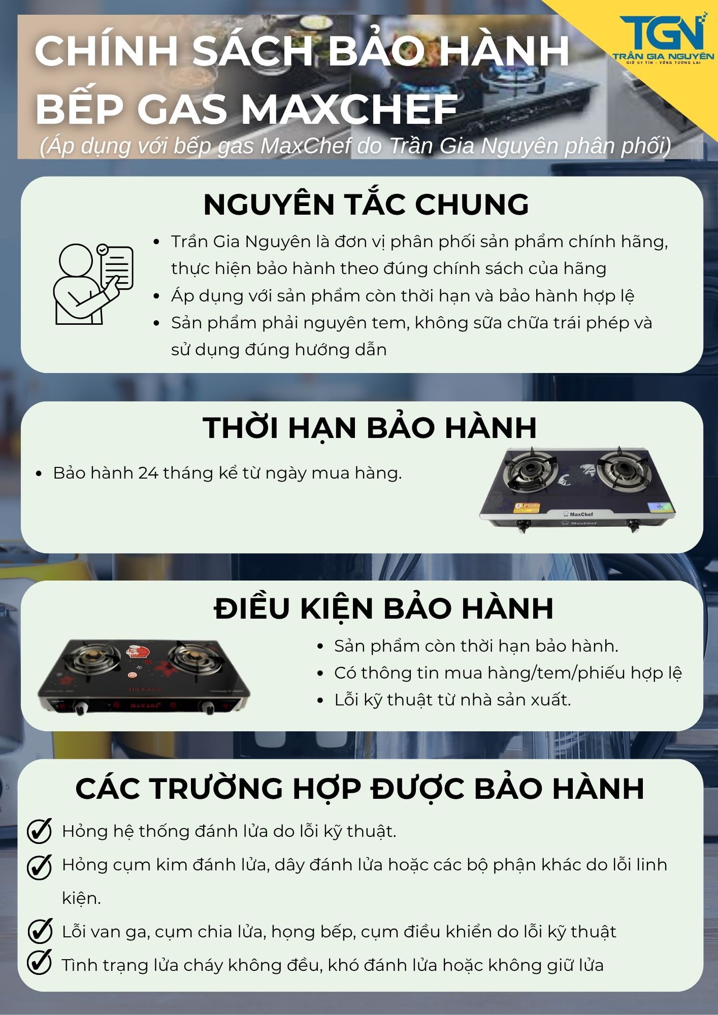 CHÍNH SÁCH BẢO HÀNH BẾP GAS MAXCHEF