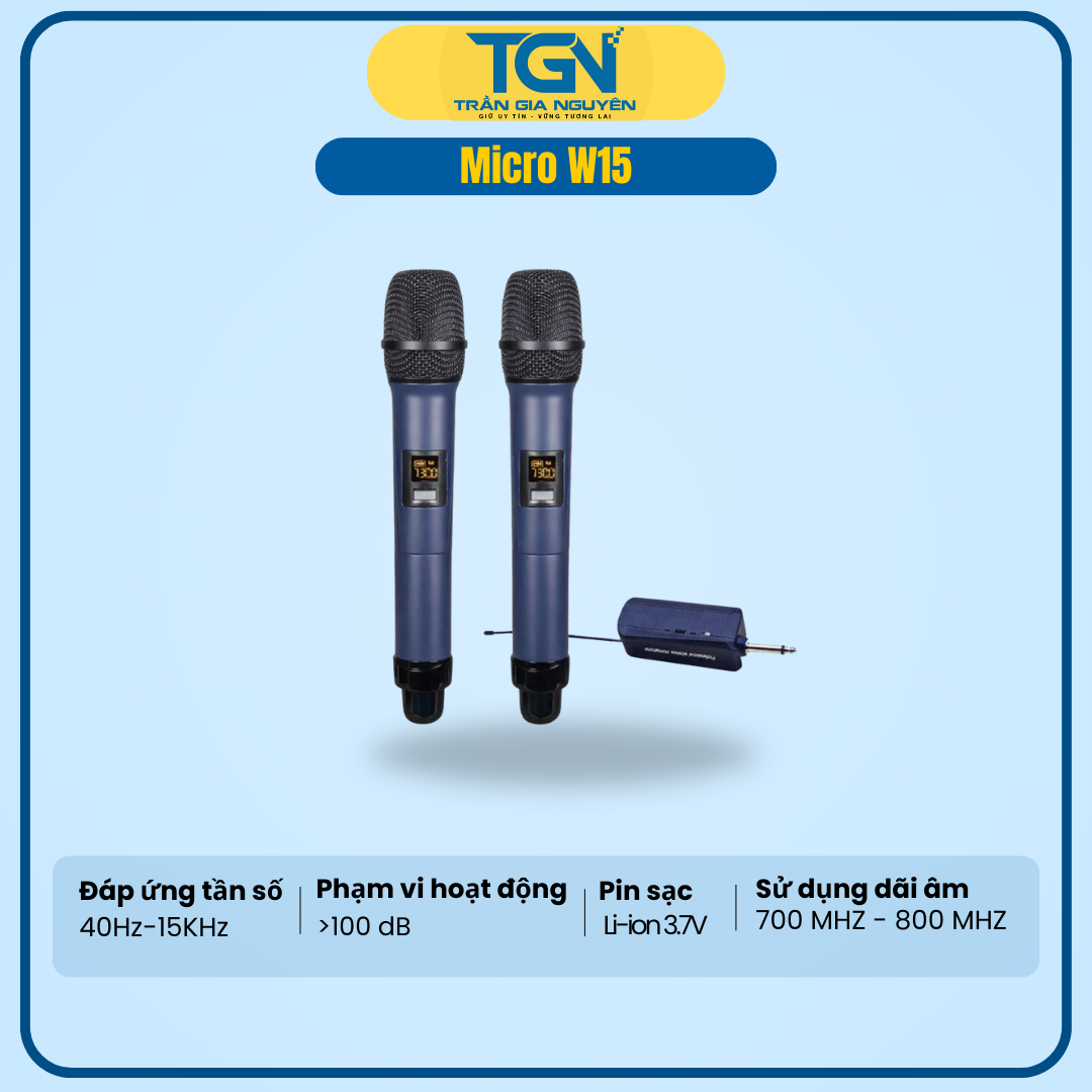 Bộ micro W-15 bao gồm 2 Micro cầm tay không dây và 1 đầu thu sử dụng tần số riêng biệt.