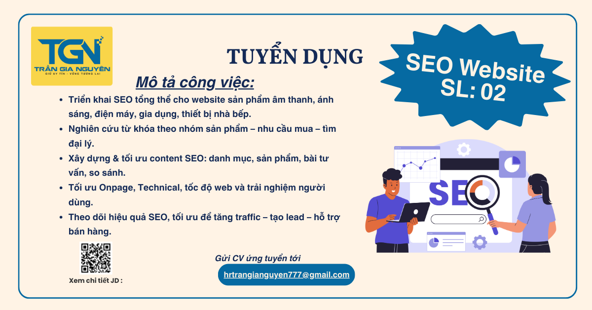 - Ưu tiên ứng viên có kinh nghiệm SEO các ngành: