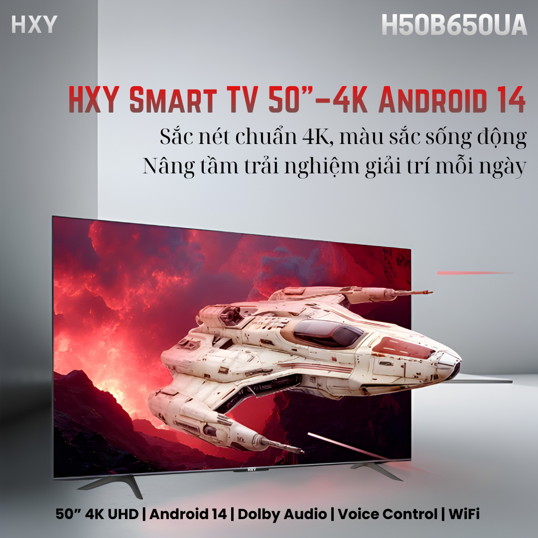 HXY H50B650UA là dòng Smart TV 50 inch 4K UHD được trang bị Android 14 mới nhất, mang đến trải nghiệm hình ảnh vượt trội, vận hành mượt mà và kho giải trí phong phú cho gia đình cũng như các không gian kinh doanh như quán cà phê, khách sạn, phòng họp, karaoke.