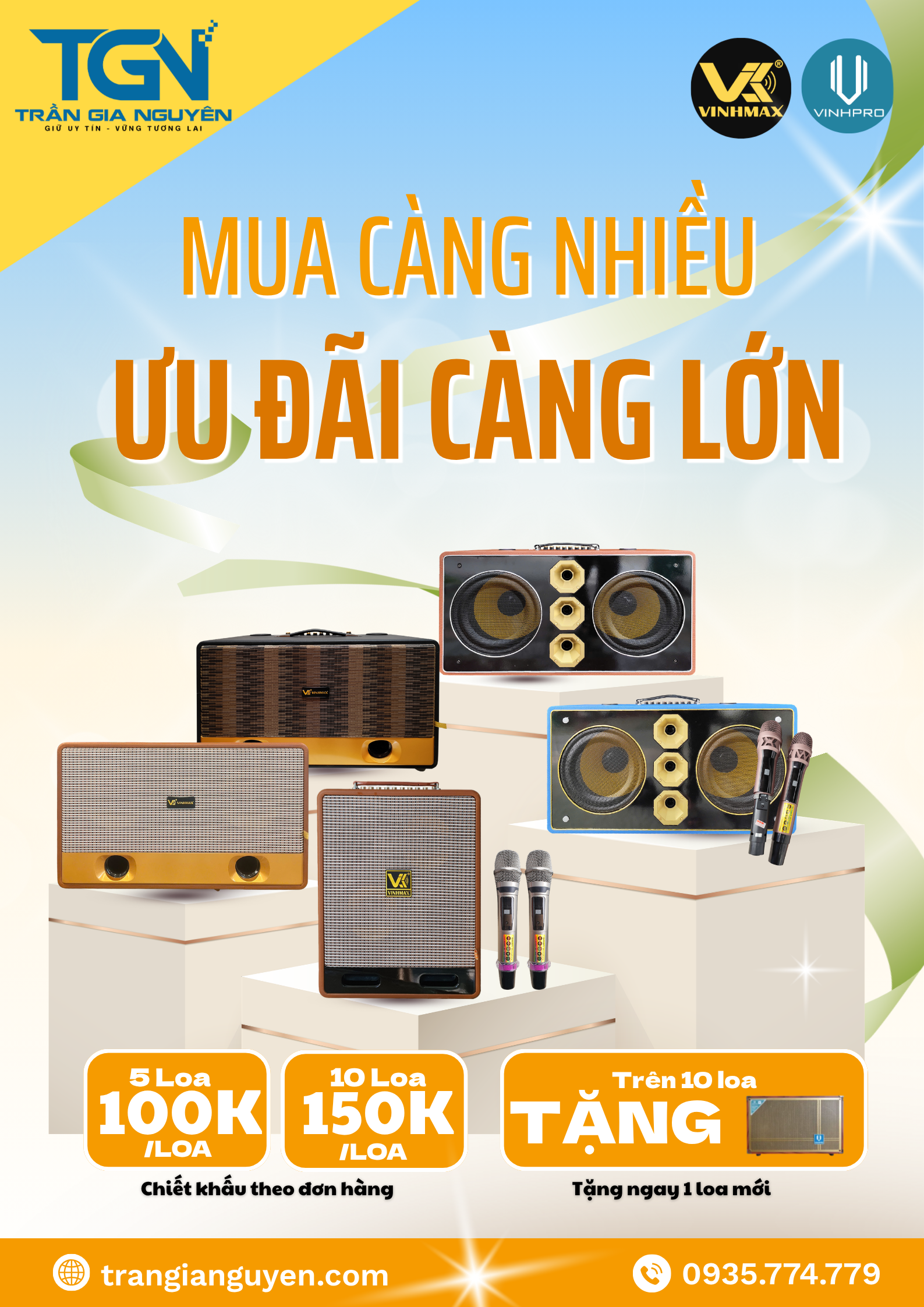 Đơn hàng 10 loa bất kỳ: giảm ngay 150.000đ/loa.