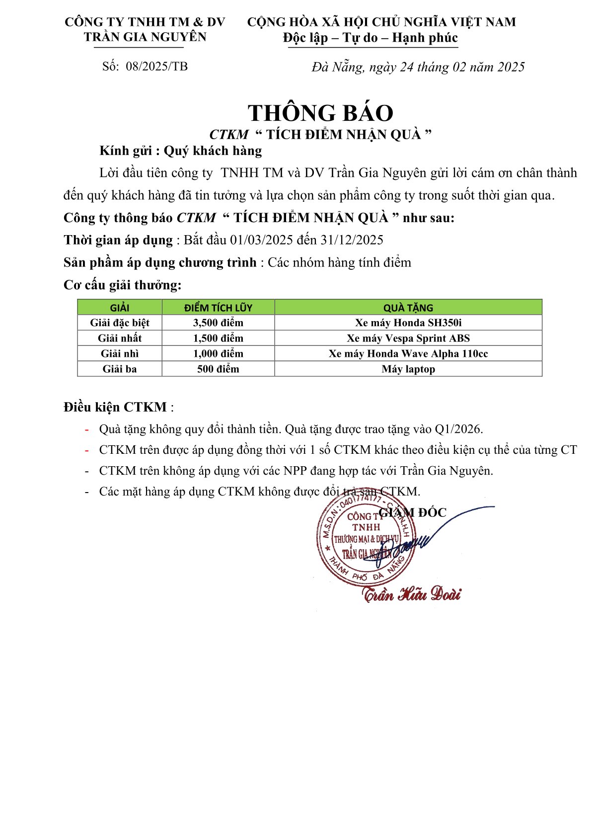 Chương Trình Khuyến Mãi Tích Điểm Nhận Quà Trần Gia Nguyên