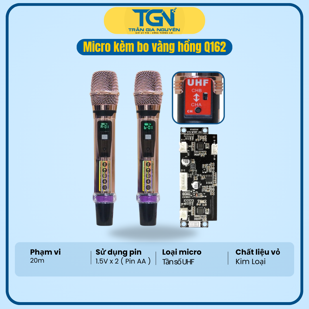 Micro không dây Q162 là dòng micro dành cho loa kéo – dàn karaoke gia đình – sự kiện nhỏ, được thiết kế chắc chắn với vỏ kim loại bền bỉ, chống va đập tốt và mang lại cảm giác cầm đầm tay, chuyên nghiệp.