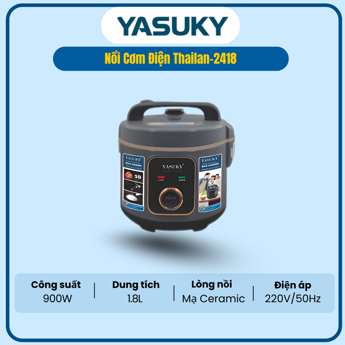 Thailand-2418 có kiểu dáng sang trọng, lòng nồi dày giúp giữ nhiệt tốt. Phù hợp cho gia đình cần nồi cơm bền, dễ dùng và cho chất lượng cơm ổn định.