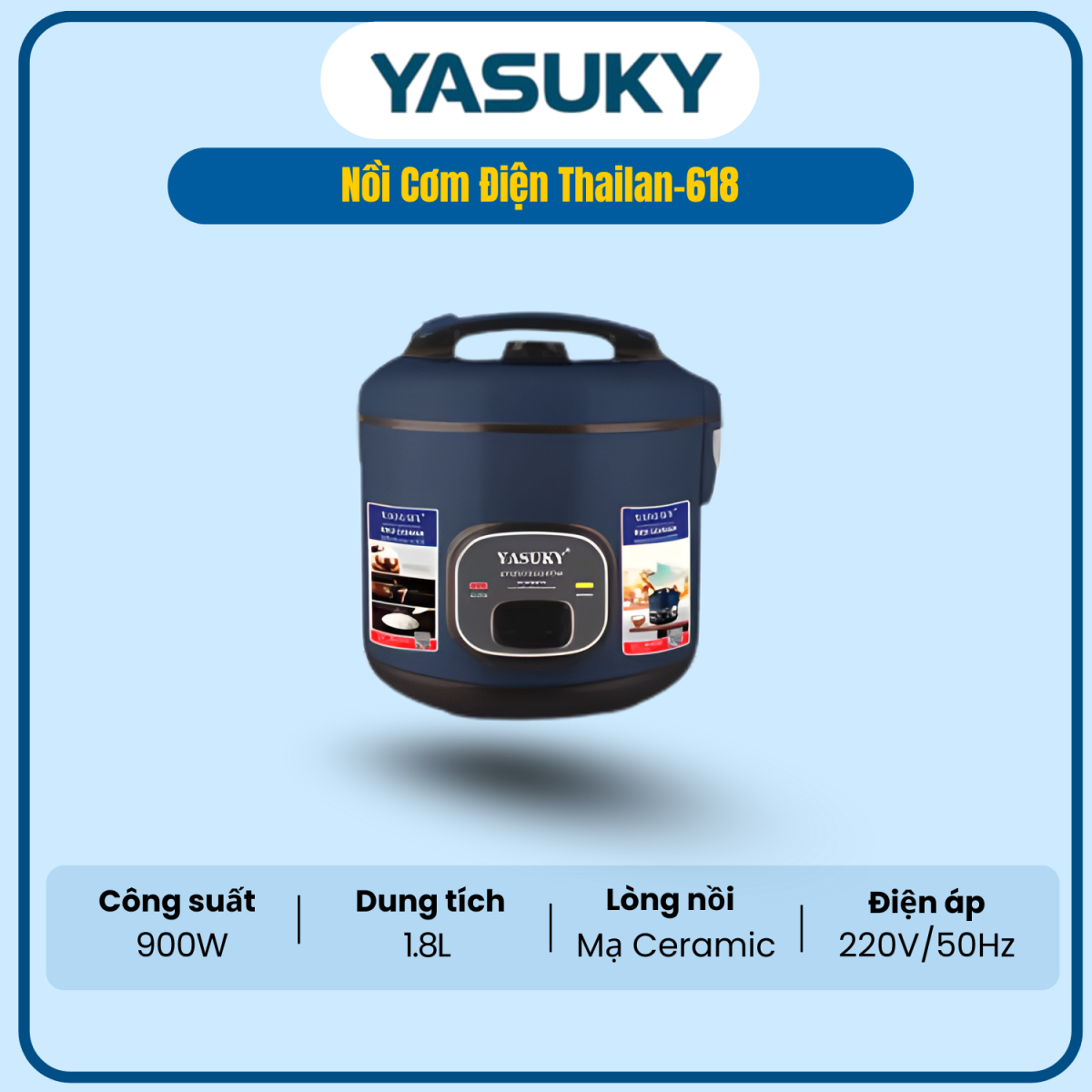 Thailand-618 phù hợp cho gia đình đông người với dung tích lớn và công suất mạnh. Nấu cơm nhanh, chín đều, giữ ấm lâu, đáp ứng nhu cầu sử dụng hằng ngày.