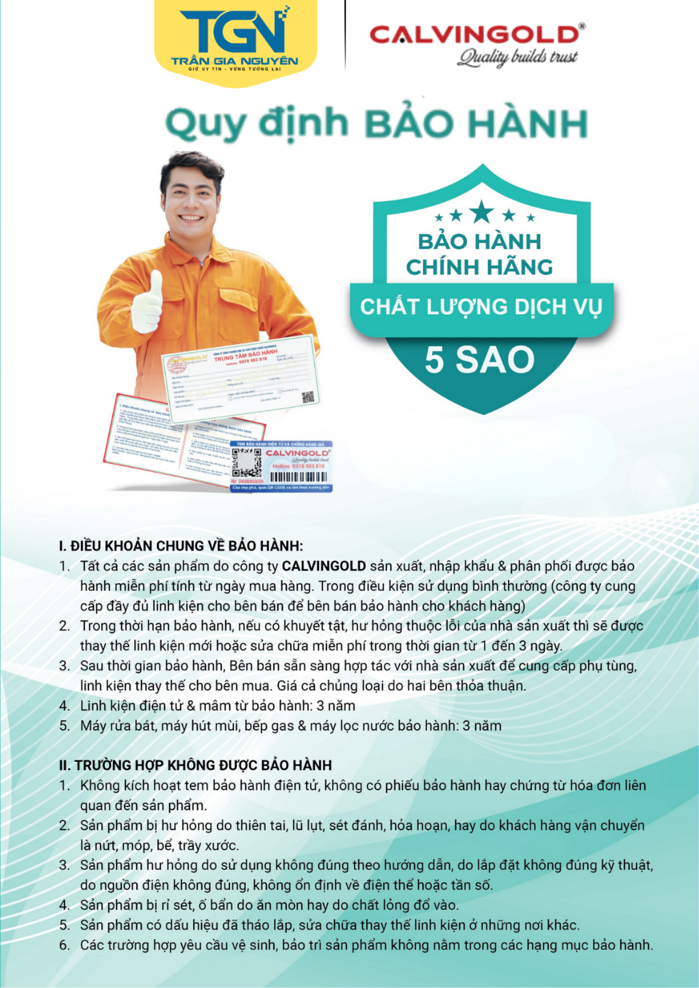 CHÍNH SÁCH THIẾT BỊ NHÀ BẾP CALVINGOLD