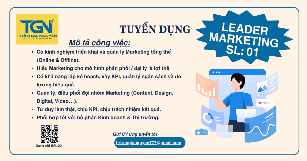 - Tối thiểu 3–5 năm kinh nghiệm Marketing, có kinh nghiệm quản lý.